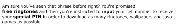 This will take you only 30 seconds tops. You can spare 30 seconds just to check this site out and not have to worry about spending your cash on ringtones, wallpapers and java games again right?